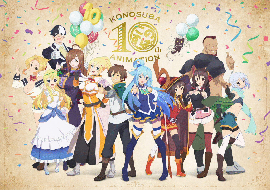 The celebration continues offline too. A massive 10th anniversary event will be held on July 26 at Pacifico Yokohama, featuring beloved cast members Jun Fukushima (Kazuma), Sora Amamiya (Aqua), Rie Takahashi (Megumin), and Ai Kayano (Darkness), joined by theme song artist Machico.