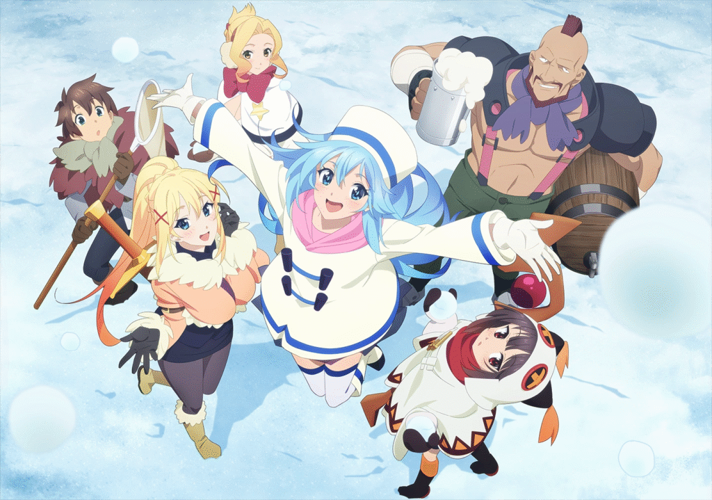 As if that wasn’t enough, Akatsuki has written an original audio drama set across the anime’s four seasons. The winter release, titled “White Snow Fairy Tale: The Season of Ice Flowers,” promises classic KonoSuba-style slapstick with a fresh story and exclusive illustration.